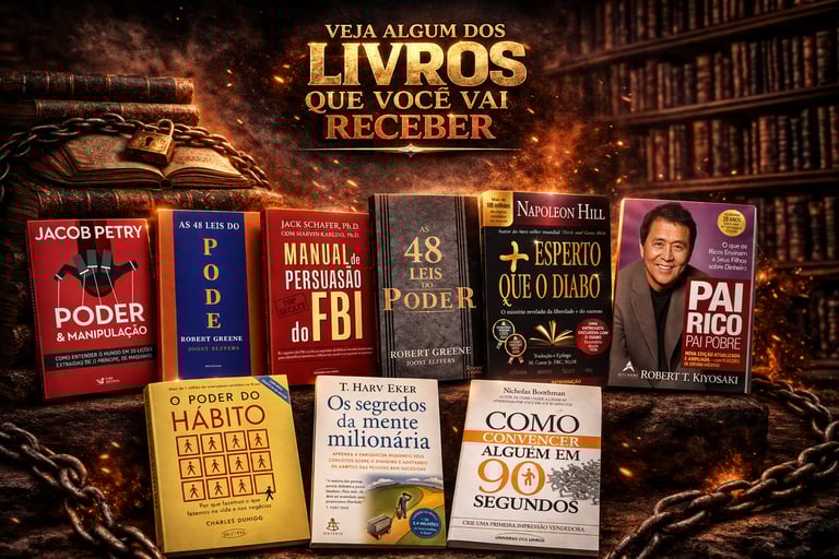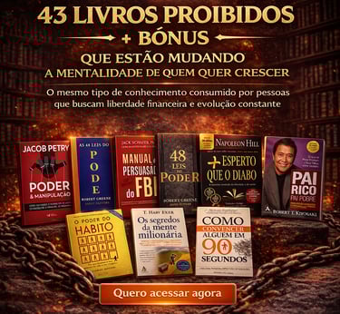 Uma coletânea transformadora baseada nos 43 livros proibidos, organizada para te guiar com clareza rumo ao crescimento pessoal, inteligência financeira e uma nova forma de pensar