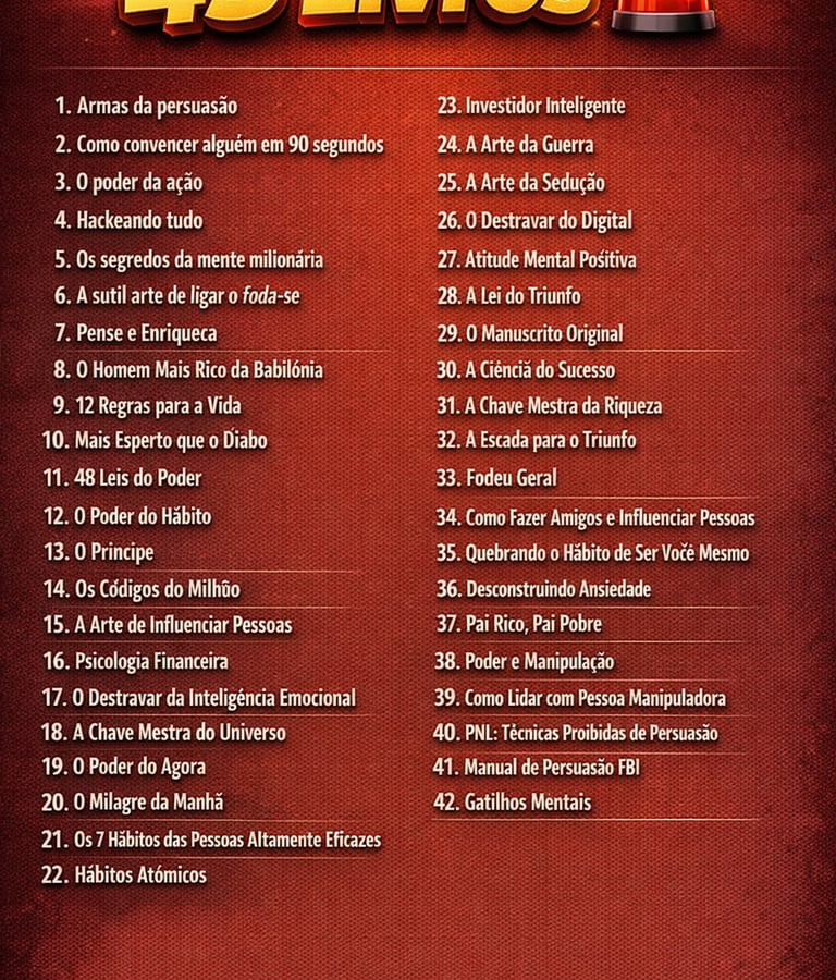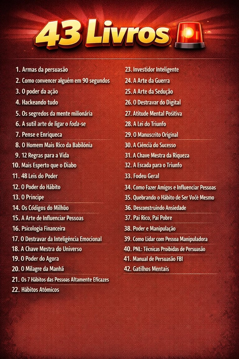 Acesse agora uma coleção completa com 43 livros focados em mentalidade, riqueza, influência e crescimento real.